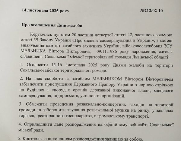 Дорога Сокальська громадо! Завтра, 15 листопада, о 13.00 год. біля храму св. ап. Петра і Павла відбудеться зустріч Героя Віктора Мельника, жителя с. Завишень.
