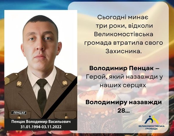 Сьогодні минає три роки з моменту втрати Великомостівською громадою свого Захисника — Володимира Пенцака.