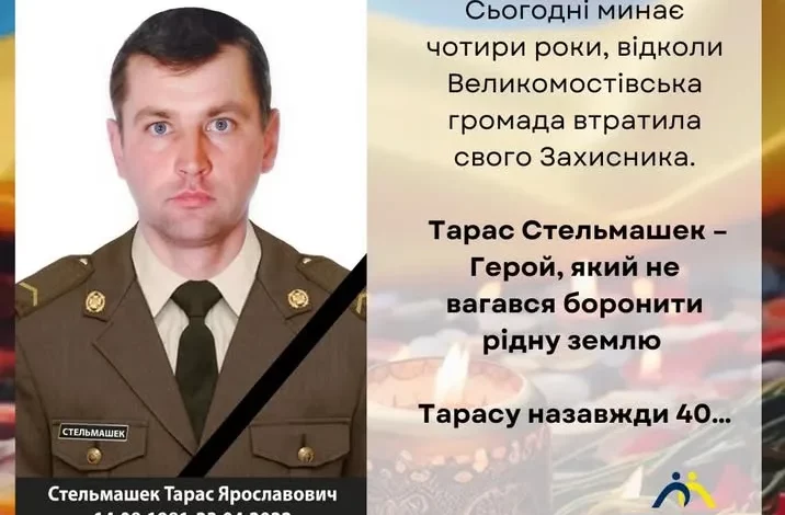 Сьогодні минає чотири роки відтоді, як Великомостівська громада втратила свого Захисника — Тараса Стельмашека. Він народився 14 серпня 1981 року у селі Реклинець, де пройшли його дитинство і юність. Після школи працював на шахті, згодом — на шахті «Лісова» ДП «Львіввугілля».