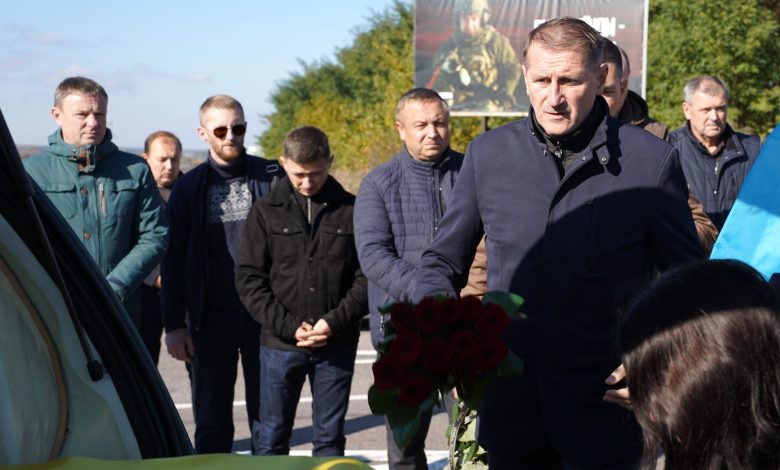 After the Heroes’ Crossroad, the mourning convoy with the soldier’s body was taken to his hometown of Stebnyk, where a city-wide farewell took place at the central Shevchenko Square.