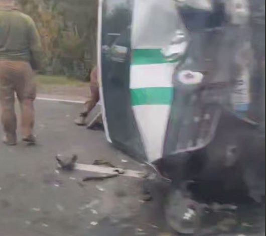 The incident occurred on October 16. A video taken by eyewitnesses shows the armored vehicle lying on its side with debris scattered around. Several men in uniform, presumably security or cash transport personnel, are also seen at the scene.
