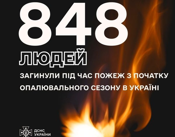 Since the beginning of the heating season in Ukraine, fires have claimed the lives of 848 people, including 23 children.