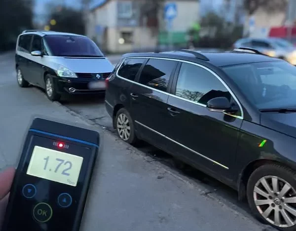 After testing with a Drager device, a blood alcohol level of 1.72 per mille was recorded. The driver was issued two citations: one for violating traffic rules leading to the accident, and another for driving under the influence.