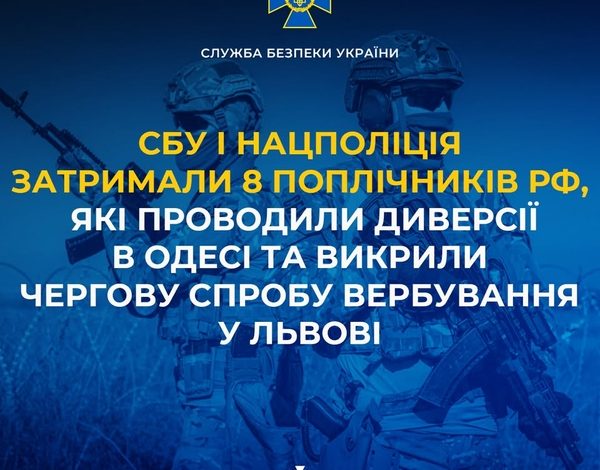 The counterintelligence of the Security Service of Ukraine and the National Police have detained eight Russian agents who were carrying out sabotage in southern Ukraine and uncovered an attempted recruitment in Lviv.