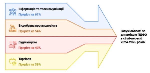 Thus, the combined share of these sectors in overall regional PIT revenues exceeds 30%. In terms of the dynamics of tax payment compared to last year, the leader for the second month in a row is the ‘Information and Telecommunications’ sector, whose payers have provided a growth rate of 61%. The second in this indicator is the mining industry, which increased their paid amounts by 54%. The construction industry ensured a growth of 43%, while trade saw a growth of 39%. Overall, tax revenues in the region increased by 24%.