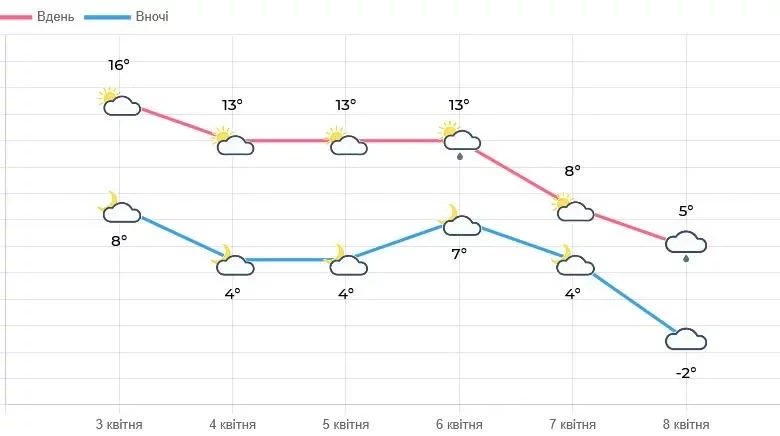 The wind will be westerly and moderate, with temperatures dropping to 2° below zero at night and rising to 19° in the daytime. The Lviv Regional Centre for Hydrometeorology wishes everyone a peaceful weekend.