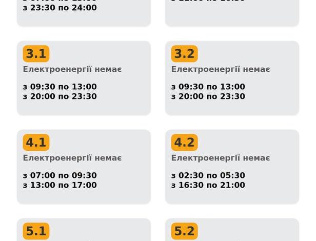 Відключення застосовуються відповідно до черг споживачів і триватимуть у визначені часові проміжки протягом доби.