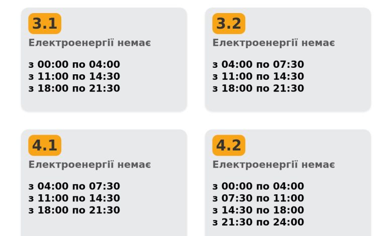 Розклад відключень електроенергії по групах: