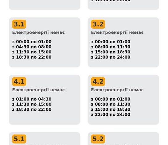Графік знеструмлення:
