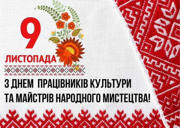 9 листопада в Україні святкують Всеукраїнський день працівників культури та майстрів народного мистецтва.