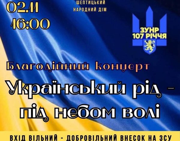 Завтра, 2 листопада, о 16:00 у Шептицькому народному домі відбудеться благодійний концерт.
