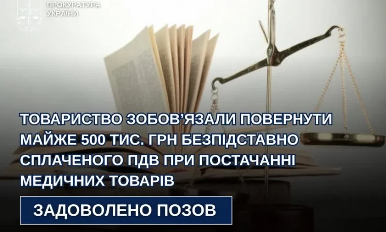 Львівська обласна прокуратура здобула судове рішення про повернення майже 500 тис. грн неправомірно стягнутого податку на додану вартість у Червонограді. Суд задовольнив позов Шептицької окружної прокуратури до товариства, яке включило ПДВ у вартість медичних товарів. Ці товари постачалися для боротьби з COVID-19, що за законодавством мало відбуватися без нарахування податку.
