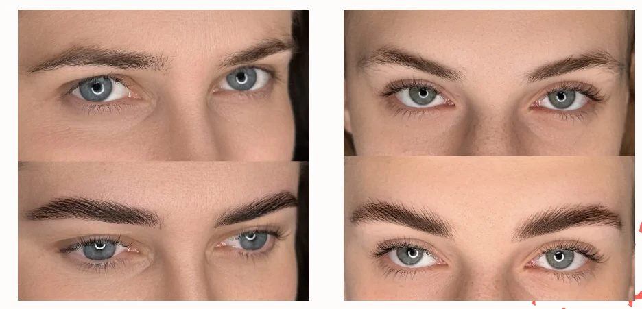 - планируется или уже выполнена волосковая техника бровей.