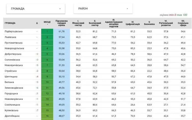 «Відтоді, як ми почали формувати рейтинг територіальних громад, минув рік. За цей час у більшості громад видно конкретні зміни: в безпеці, економіці, цифровізації та соціальних послугах», – зазначив Максим Козицький з департаменту економічної політики Львівської ОДА.