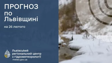 (Українська) Прогноз погоди на 23 лютого для Львівщини: дощі та ожеледиця